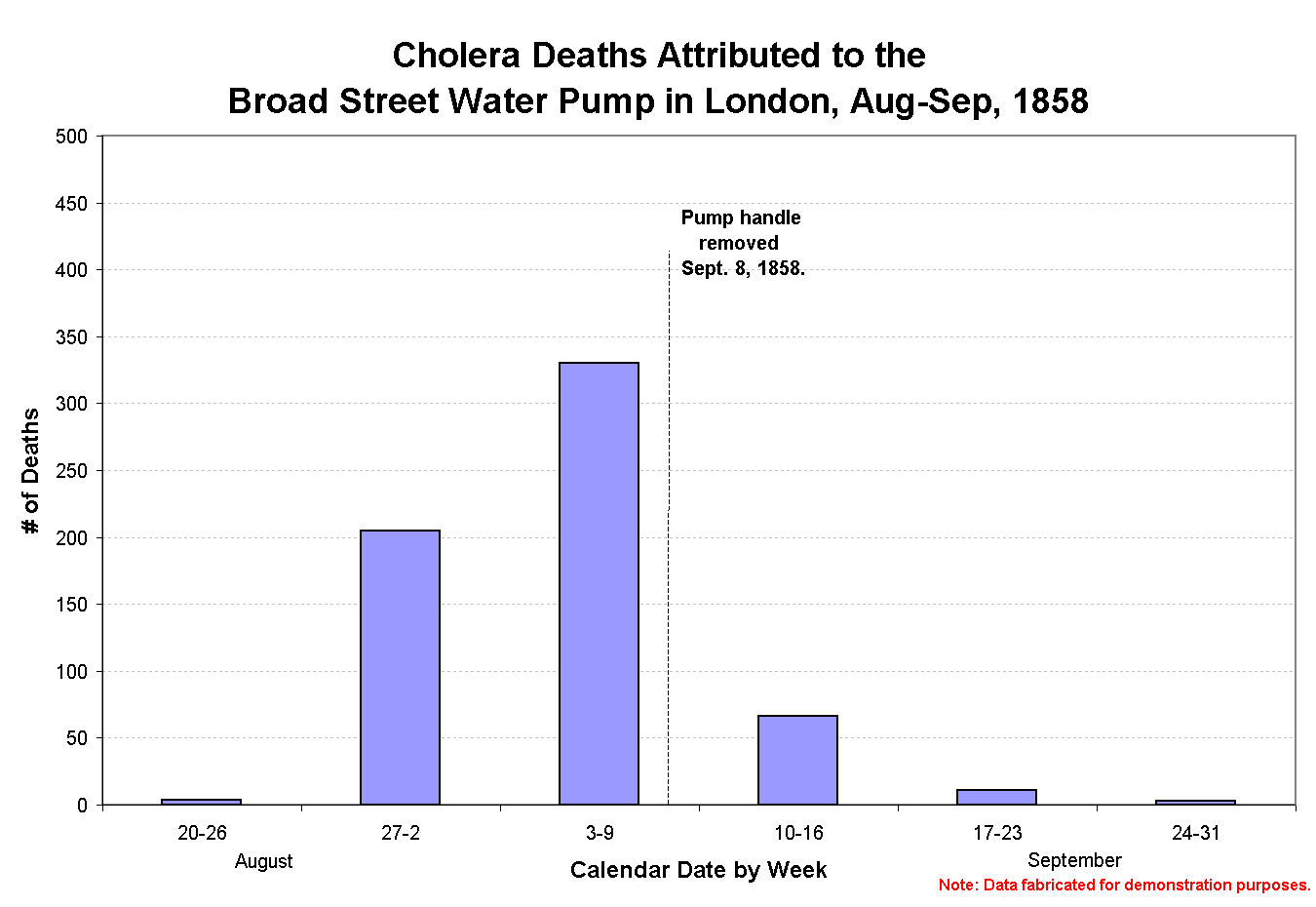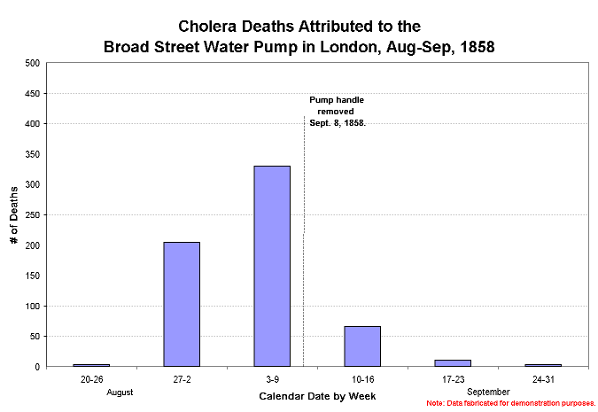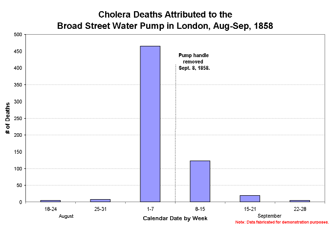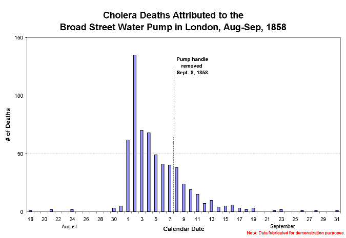 Cholera Epidemic of 1858 demonstrates how the exact same data can be presented